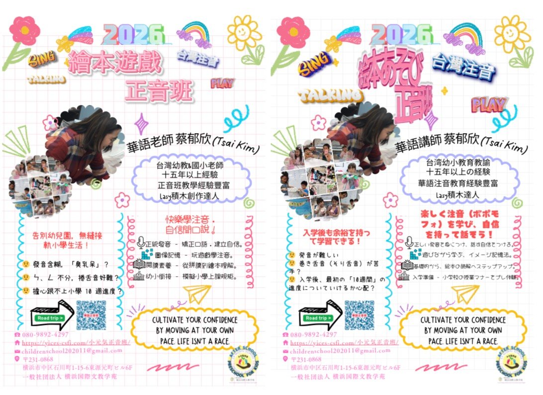 中国語(華語)・日本語・英語の三言語教育理念にもとづき、「言葉 × 感覚統合 × STEAM × 遊び学習」で、ことば・表現力・集中力・思考力等をバランスよく育てる幼児教室です。